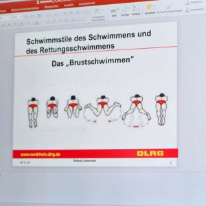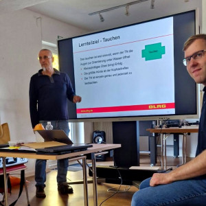 Der zweitägige Kurs bestand aus einem umfangreichen Theorieteil, in dem unter anderem Didaktik, Methodik und schwimmspezifisches Fachwissen vermittelt wurden. In den Praxiseinheiten wurde das Gelernte direkt im Becken umgesetzt. Die beiden Jugendlichen waren mit viel Begeisterung dabei, haben konzentriert gearbeitet und die Prüfung zum Juniorausbilder erfolgreich bestanden.